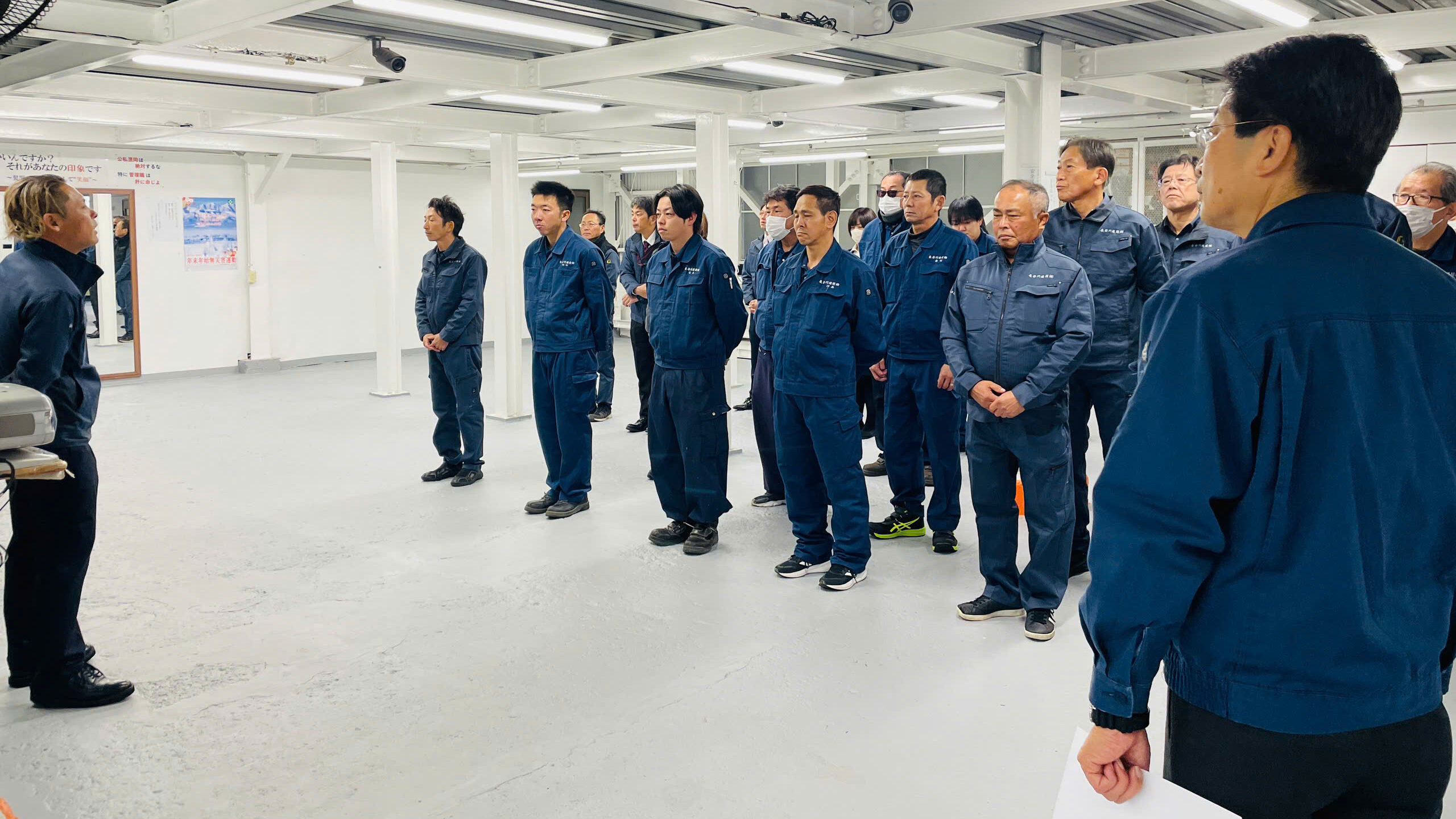 社員一同が一堂に会し、新年のご挨拶とともに、本年も無事故・無災害で業務に取り組むこと、そしてさらなる発展と成功を目指すことを改めて確認いたしました。