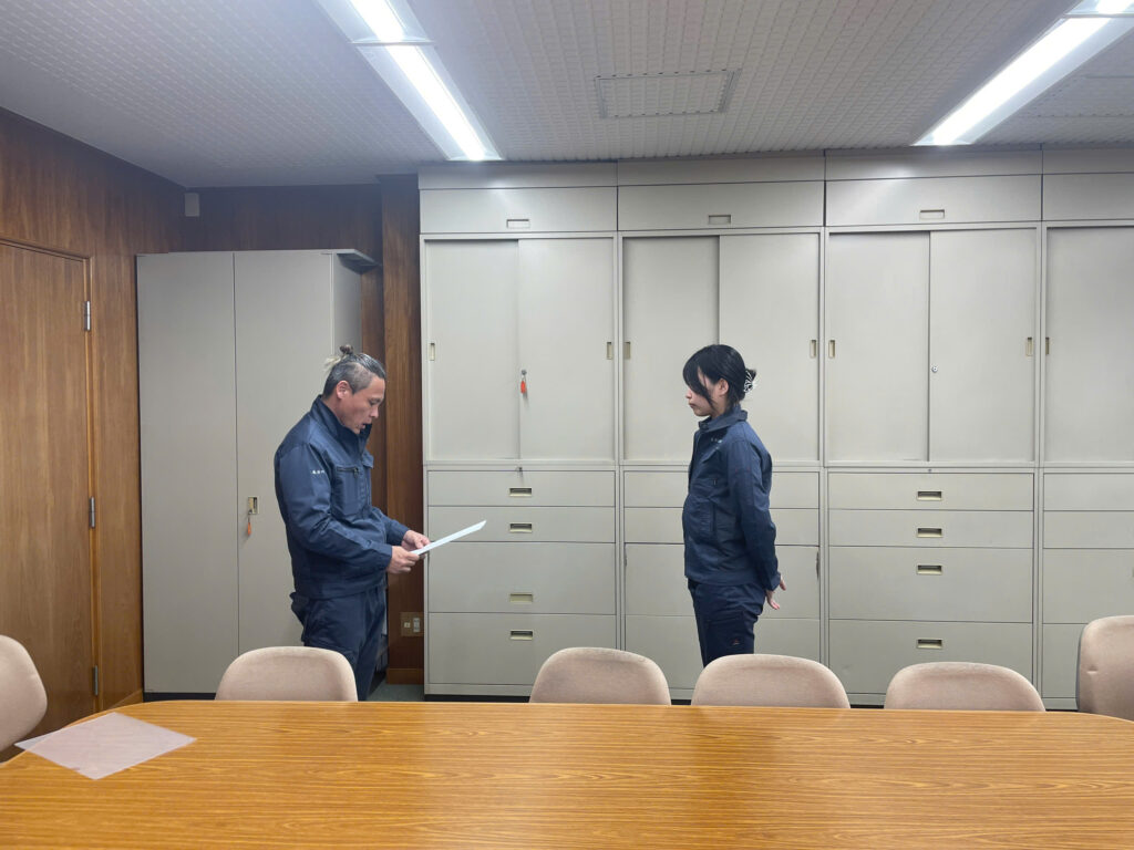 入社式では、緊張しながらも新しい環境に挑戦しようとする前向きな姿が印象的でした。当社では、未経験の方でも安心して働けるよう、指導体制の充実と安全第一の環境づくりに取り組んでおります。